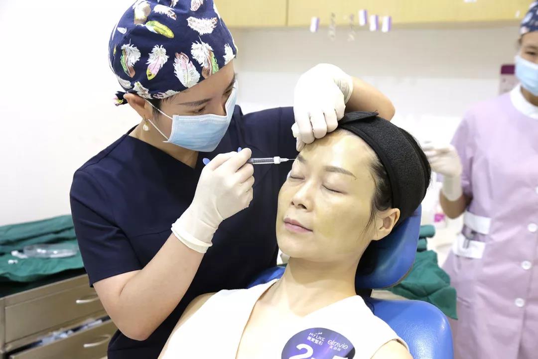 專家針對(duì)求美者的輪廓線、中軸線、提升線這三條美學(xué)線綜合設(shè)計(jì)方案,對(duì)活動(dòng)選出的幸運(yùn)顧客進(jìn)行現(xiàn)場(chǎng)注射。