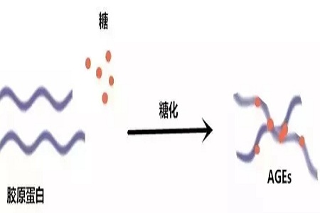 糖化反應(yīng)是法國(guó)化學(xué)家Millard發(fā)現(xiàn)的一個(gè)化學(xué)反應(yīng)(氨基酸與葡萄糖混合加熱會(huì)形成褐色物質(zhì)),而蛋白質(zhì)就是氨基酸構(gòu)成的,糖會(huì)與皮膚中的膠原蛋白、彈性蛋白發(fā)生糖化反應(yīng),較后生成糖基化產(chǎn)物(AGEs)。AGEs會(huì)讓皮膚看起來(lái)發(fā)黃,而且被AGEs糖化后的膠原蛋白、彈性白蛋會(huì)失去維持皮膚彈性的作用,加速皮膚的衰老。大量食用精制糖、精制碳水食物、飲料、甜食都會(huì)加速糖化反應(yīng)。