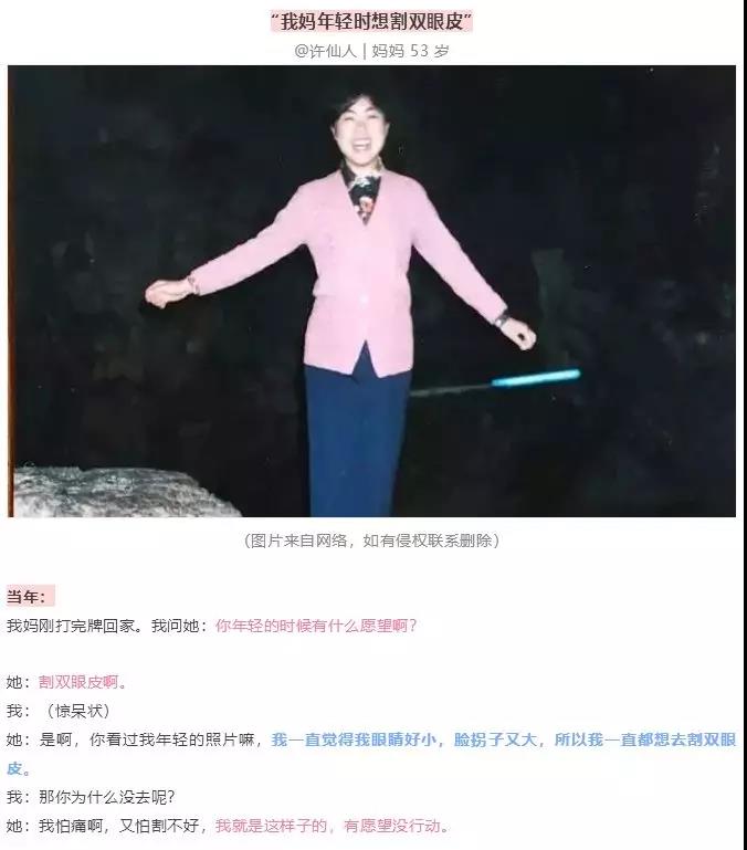 前段時(shí)間火爆網(wǎng)絡(luò)的一篇文章里提到有位媽媽想割雙眼皮拖了30年,很后悔自己沒(méi)有在較好的年華里讓自己變得更美,每次看到年輕時(shí)候的照片都能感嘆一次~