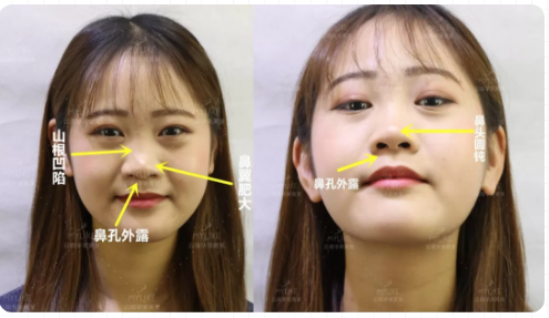 術(shù)前困擾:山根凹陷、鼻孔外露,鼻翼肥大、鼻頭圓鈍
