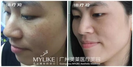 小like科普:大Q激光能使黑色素瞬間加熱爆破,并抑制黑色素的活性;而755nm波長直接鎖定"黑色色素",具有美白嫩膚作用。兩者的結合使用對華菲色斑治療效果非常好哦~!