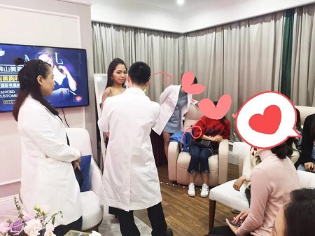 其中,一位外籍模特還特地推了其它工作,從外地趕來參加本次沙龍。曾昂教授、孫婧主任現(xiàn)場為她進(jìn)行了測量,并為她制定出合適的美胸方案。