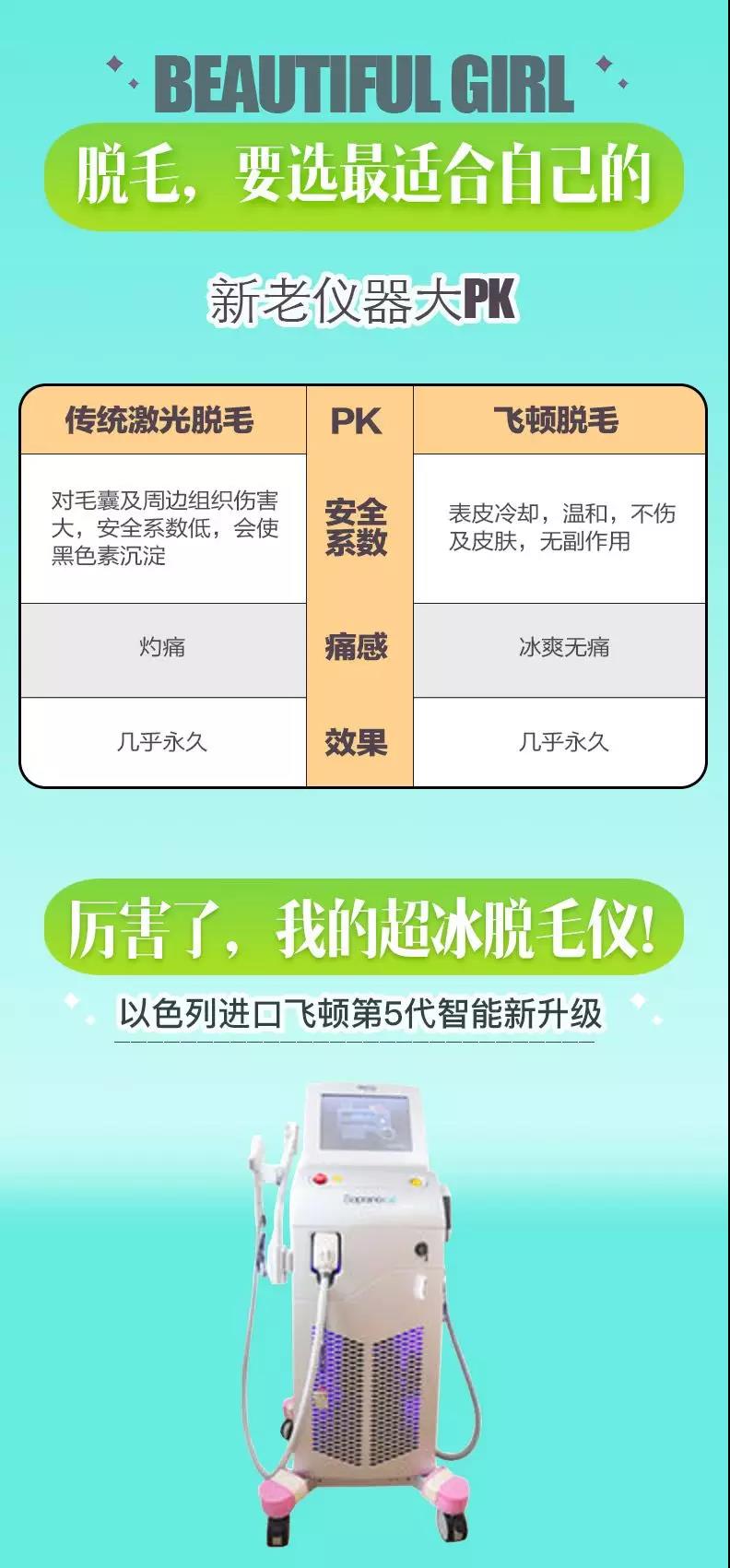 冰點脫毛是國際認(rèn)可的目前脫毛較專業(yè)技術(shù),既又安全、快速,還有嫩膚美白的功能。在時間上也達(dá)到了真正的持久性。此技術(shù)通過激光、光學(xué)技術(shù),將冰點脫毛、收縮毛孔、提亮緊致肌膚集于一體,讓求美者通過冰點脫毛,不僅能去除身上多余毛發(fā),還能收縮毛孔,讓脫毛后的肌膚細(xì)膩亮白。