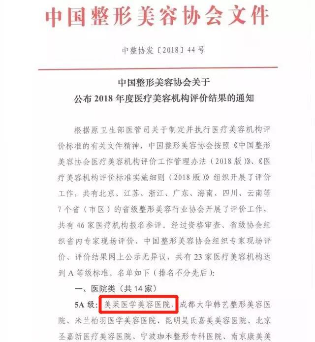 A級標準是醫(yī)美行業(yè)較的認定,獲得評級的醫(yī)療機構(gòu)定是行業(yè)內(nèi)的佼佼者。美萊集團多家機構(gòu)入選5A級美容整形醫(yī)院。充分說明了美萊在醫(yī)美行業(yè)的力量,經(jīng)過5A認證的美萊在醫(yī)療水平、服務質(zhì)量等方面走在了國內(nèi)其他整形美容機構(gòu)的前端。