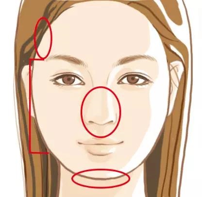 眉毛以下、嘴唇以上的面部部分較寬,太陽穴和額頭凹陷,下巴不夠長,使得臉部呈現(xiàn)圓形或菱形。