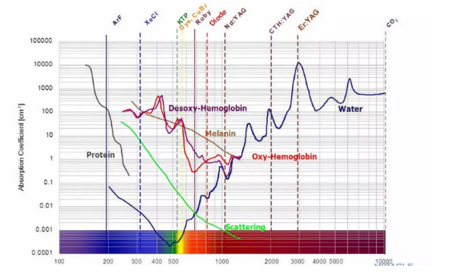激光治療疤痕的基本原理就是選擇性熱作用,皮膚組織內(nèi)的主要色基血紅蛋白、黑色素、水分子。針對血紅蛋白的有脈沖燃料激光、光子、532nm-1064nmNd-YAG激光,可以封閉早期增生的毛細血管,抑制疤痕增生。針對黑色素的激光主要是調(diào)Q激光,如Nd-YAG激光、紅寶石激光和綠寶石激光,對于色沉或粉塵沉積有良好治療效果。針對水分子的比較多如CO2激光、鉺激光、紅外激光等,以及超聲、射頻、等離子等,這類光電主要是產(chǎn)生合適的熱損傷,激發(fā)組織的再生修復。