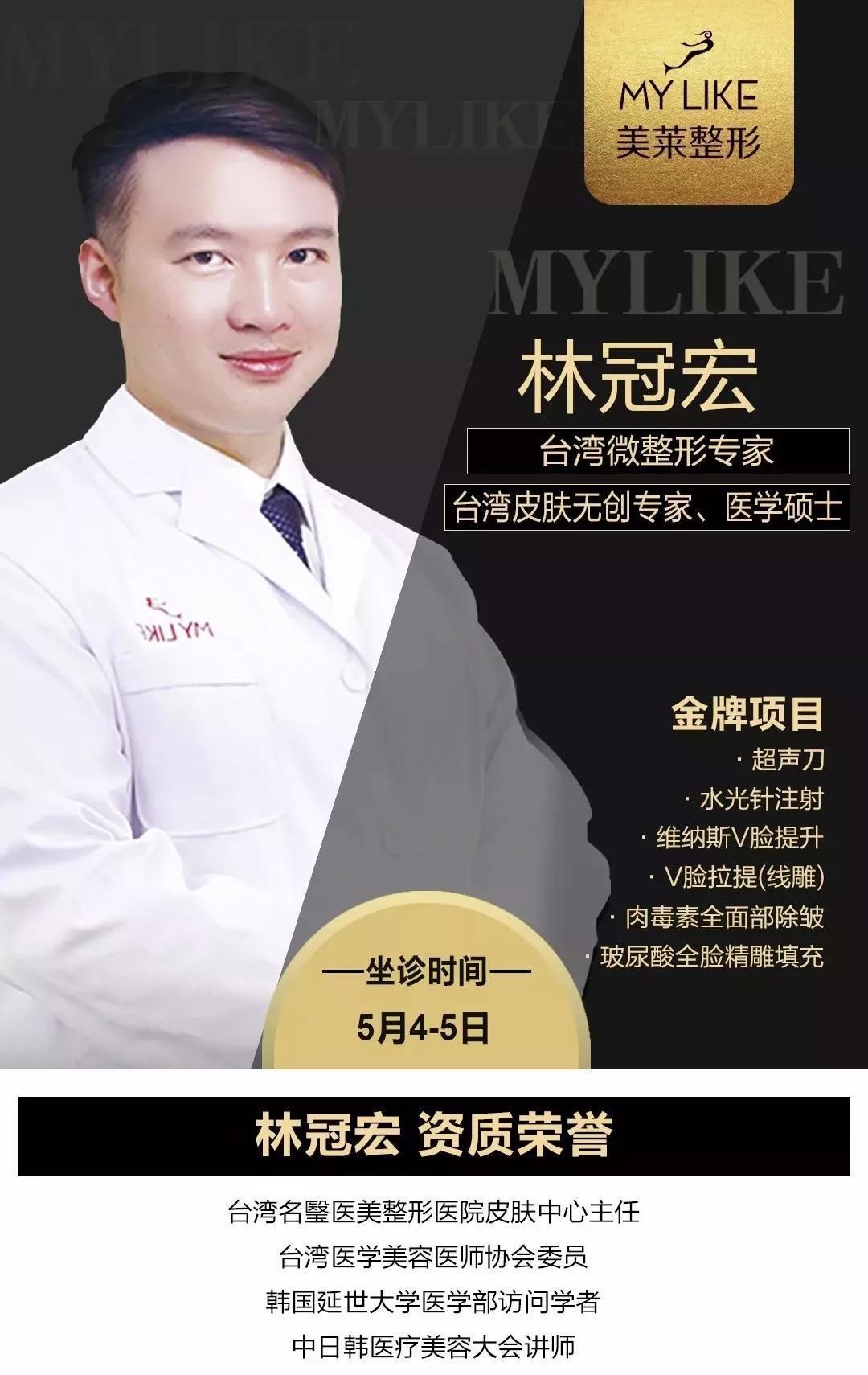 【萊·醫(yī)師】臺(tái)灣微整形醫(yī)師林冠宏5月4-5日親臨美萊,速約!