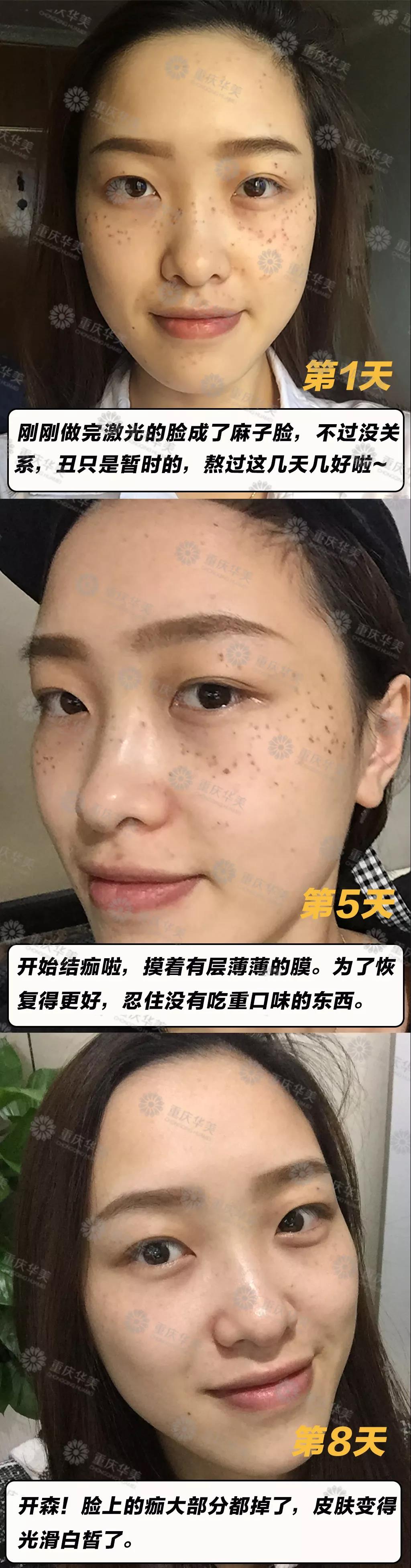 第8天大部分結痂都掉了,15天皮膚白凈