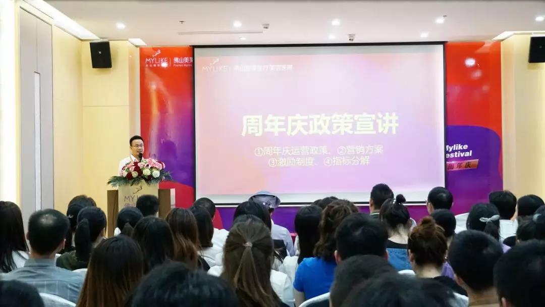隨后,由佛山美萊運營管理部經(jīng)理向全體員工介紹關(guān)于佛山美萊周年慶的營銷細則和優(yōu)惠政策。