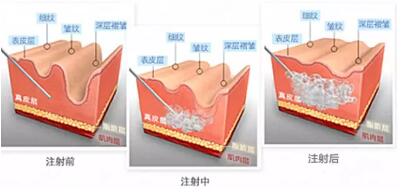 玻尿酸除皺通過注射填充人體的細(xì)胞與膠原纖維之間的空間,填充皮膚凹陷、皺紋褶皺,達(dá)到除皺的目的。