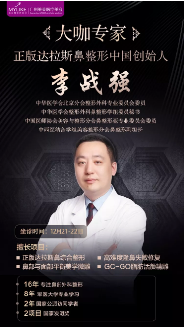2018年12月21-22日,約隆鼻巨匠——李戰(zhàn)強(qiáng)坐診廣州美萊|為愛(ài)美者全心打造專(zhuān)屬靈韻美鼻!