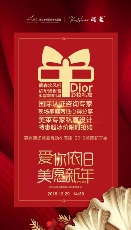 當前位置 : 美萊醫(yī)療美容醫(yī)院品牌連鎖 > 美萊新聞 > 2018年12月29日北京美萊邀您參加瑞藍年度私享會|只要你來!我就送禮