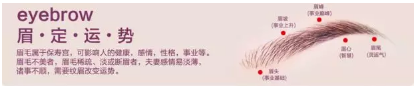 你的眉毛你的“運”:眉是五官之首 ,可以統(tǒng)籌五官,改善臉型,也稱為眉毛是人的保壽宮,可影響人的健康,感情,性格,事業(yè)等。眉毛不美者,眉毛稀疏、淡或斷眉者,夫妻感情易淡薄,諸事不順,需要紋眉改變運勢。