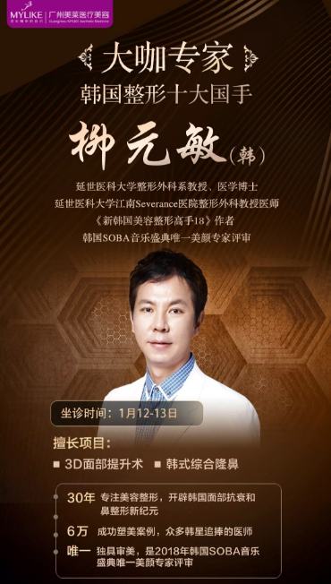 1月12-13日韓國(guó)整容醫(yī)師-柳元敏博士|坐診廣州美萊