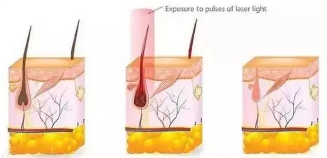 我們毛囊里的黑色素吸收對(duì)應(yīng)波長(zhǎng)的光之后迅速升溫,破壞毛囊,進(jìn)而有效的脫毛并且抑制再生。所以激光脫毛后,毛發(fā)自然就會(huì)越來(lái)越細(xì)小、顏色也越來(lái)越淡。