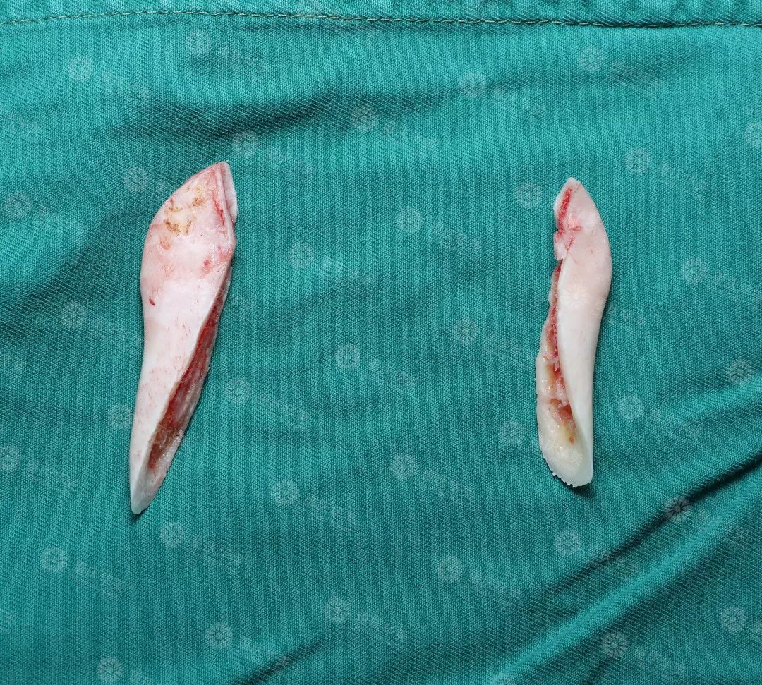 用截取下來的下頜角延長了下巴