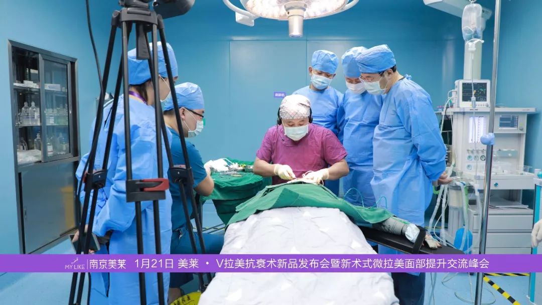 在對(duì)求美者面診和畫(huà)線后,劉歆院長(zhǎng)在手術(shù)室進(jìn)行了V拉美新術(shù)式提升手術(shù)示教。為了讓參會(huì)醫(yī)師更直觀地了解這項(xiàng)抗衰技術(shù),手術(shù)全程采用直播形式。