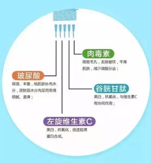 玻尿酸是必選項,它讓皮膚水嫩,其他是可選項,也可多選,就看你有沒有更多需求。